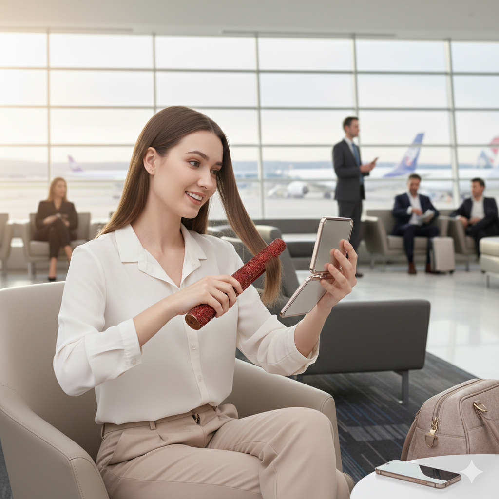 A portable and cordless styling tool, perfect for travel, allowing you to style your hair anywhere.